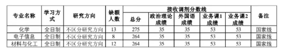 化学(0703)仅接收一志愿学科代码前2位是07考生调剂,优先接收一志愿学科代码是0703化学类考生调剂;