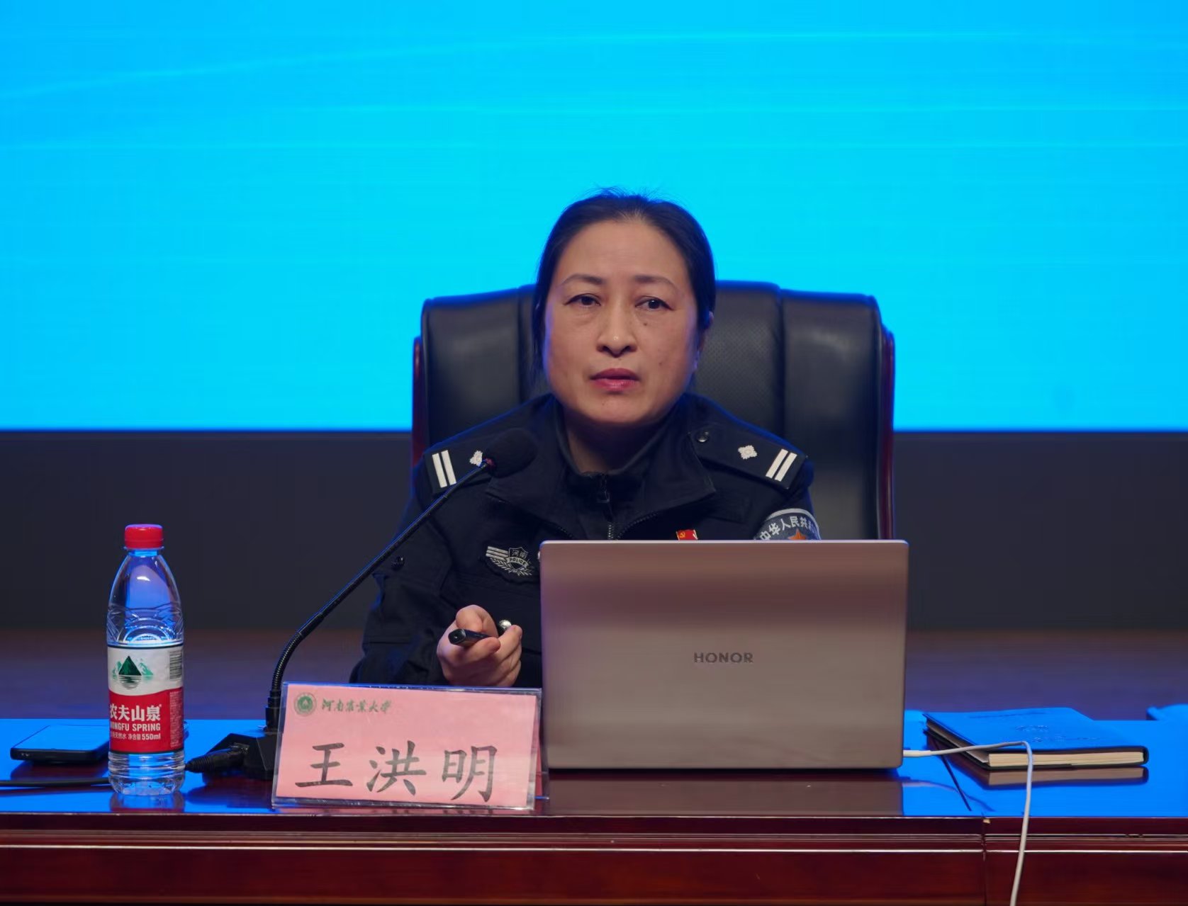 本网讯(通讯员 李怡棐 王冰怡)为切实提高学生的防诈骗意识,11月4日,我院联合食品学院于文化路校区千人大礼堂举办防诈骗安全教育宣讲会。本次活动特邀郑州市金水路文化路派出所民警王洪明担任主讲嘉宾。