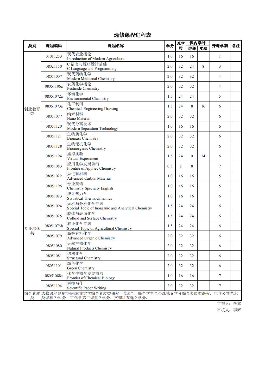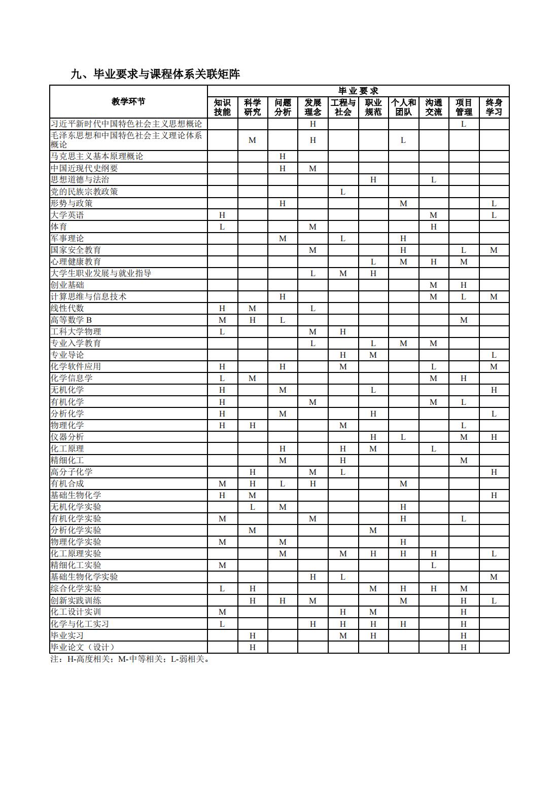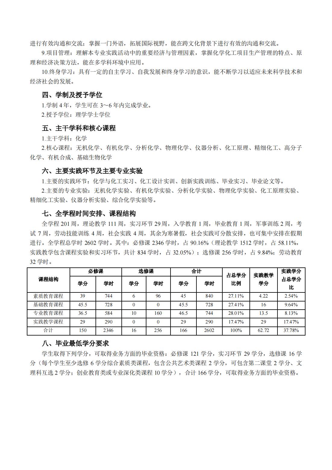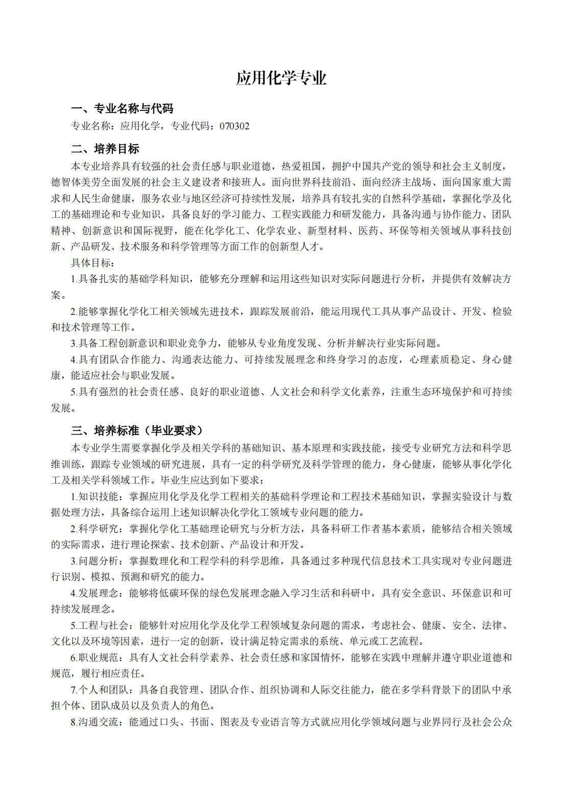 应用化学专业人才培养方案
