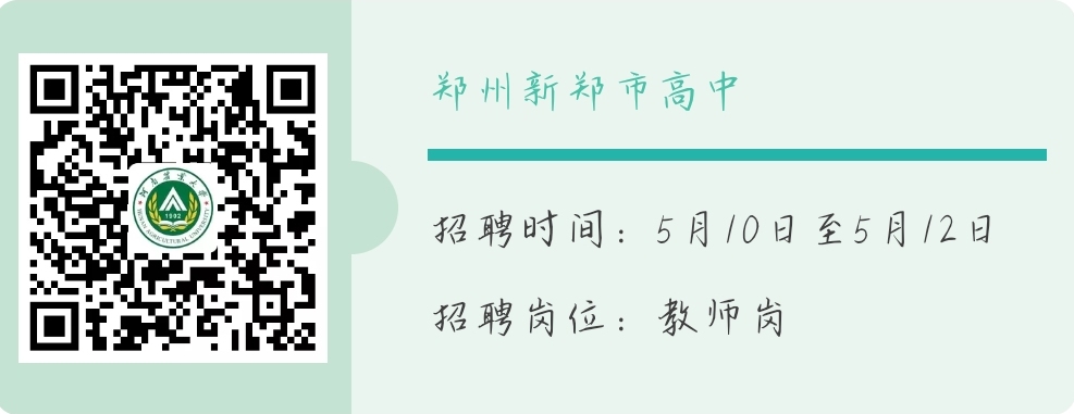 近期,河南省科院生物研究所、郑州市新郑市高中、黄河交通学院、商丘永城市学校、郑州中原区高校、河南城建学院、中国铁路、洛阳宜阳县招聘高中、许昌高级中学、开封杞县职业中专等单位发布了最新校园招聘信息,以下为本期招聘信息: