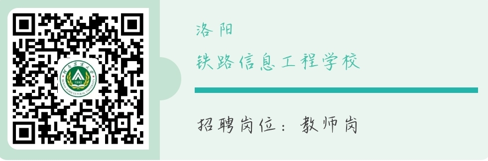 近期,中国铁路、许昌高级中学、郑州航空工业管肉漫屋 、信阳农林学院、平顶山学院、河南医学高等专科学校、洛阳铁路信息工程学校、驻马店职业技术学院、郑州外国语学校、郑州市中原区学校等单位发布了最新校园招聘信息,以下为本期招聘信息: