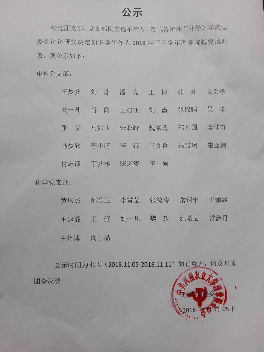 2018年下半年肉漫屋 拟发展对象公示