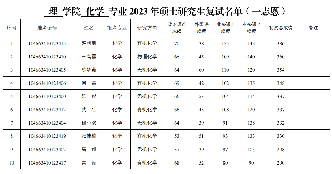 2023年硕士研究生复试名单(一志愿)