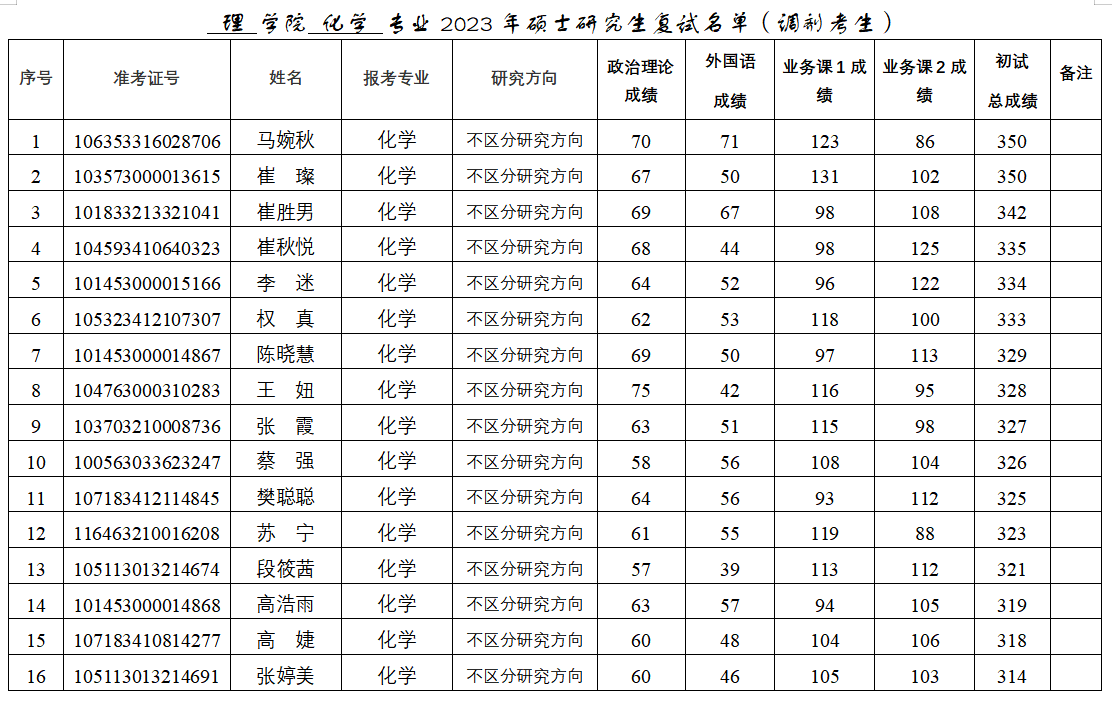 肉漫屋 化学专业2023年硕士研究生复试名单(调剂考生)
