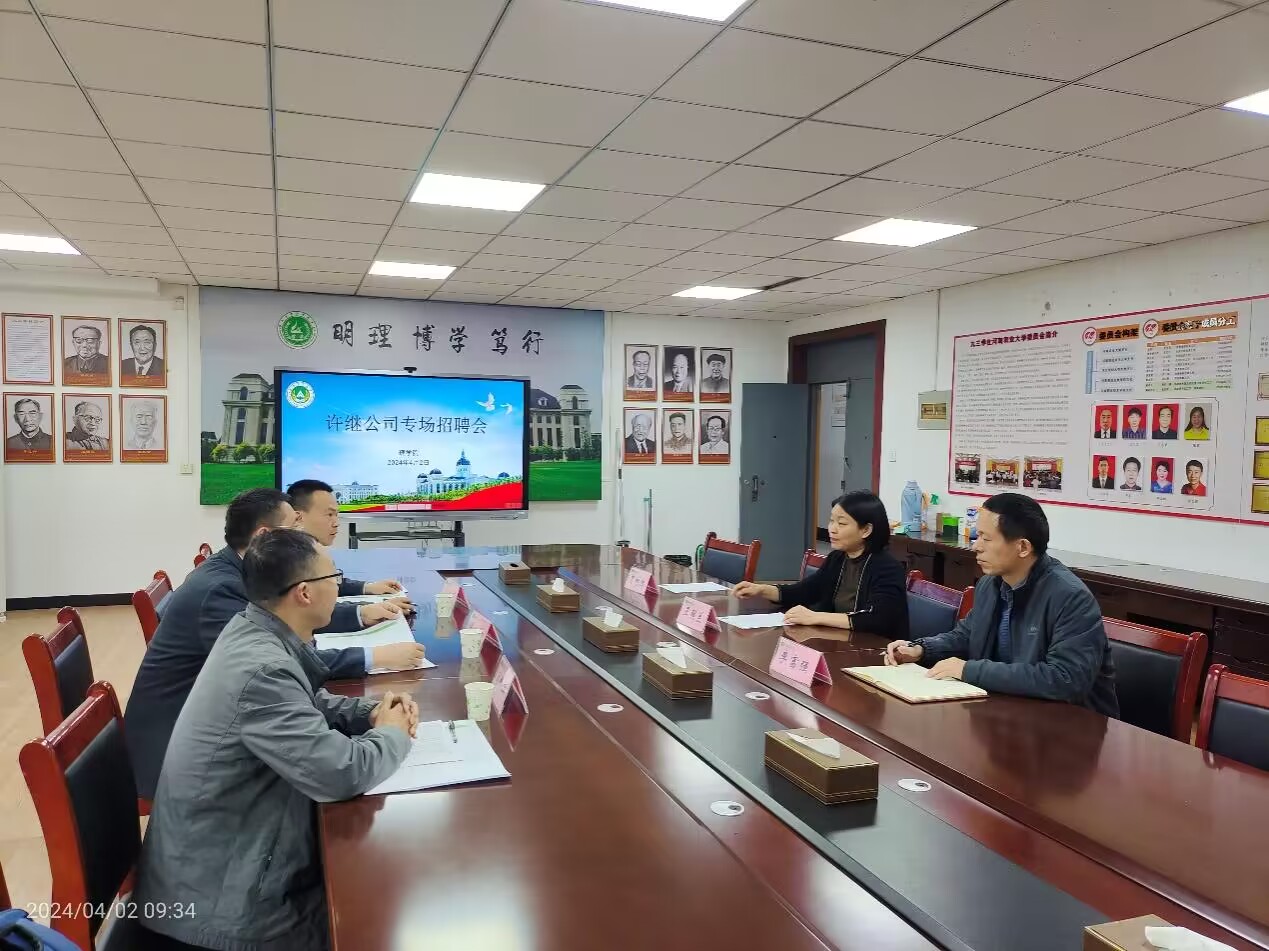 和许继仪表公司于4月2日上午在文化路校区20号楼415会议室举行专场招聘面试会。许继仪表公司计量检测事业部经理李如坤、市场支持部经理宋述甫、客户服务部主管刘耀辉和肉漫屋
