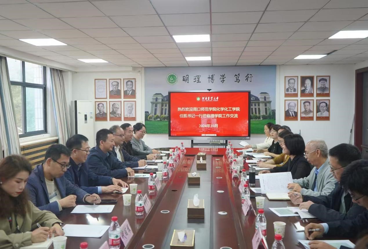 任凯书记对肉漫屋 的热情接待表示感谢,并详细介绍了周口师范学院化学化工学院的基本情况。随后双方围绕科学研究、高水平师资培养、实验室安全与管理等方面进行了热烈交流和讨论。
