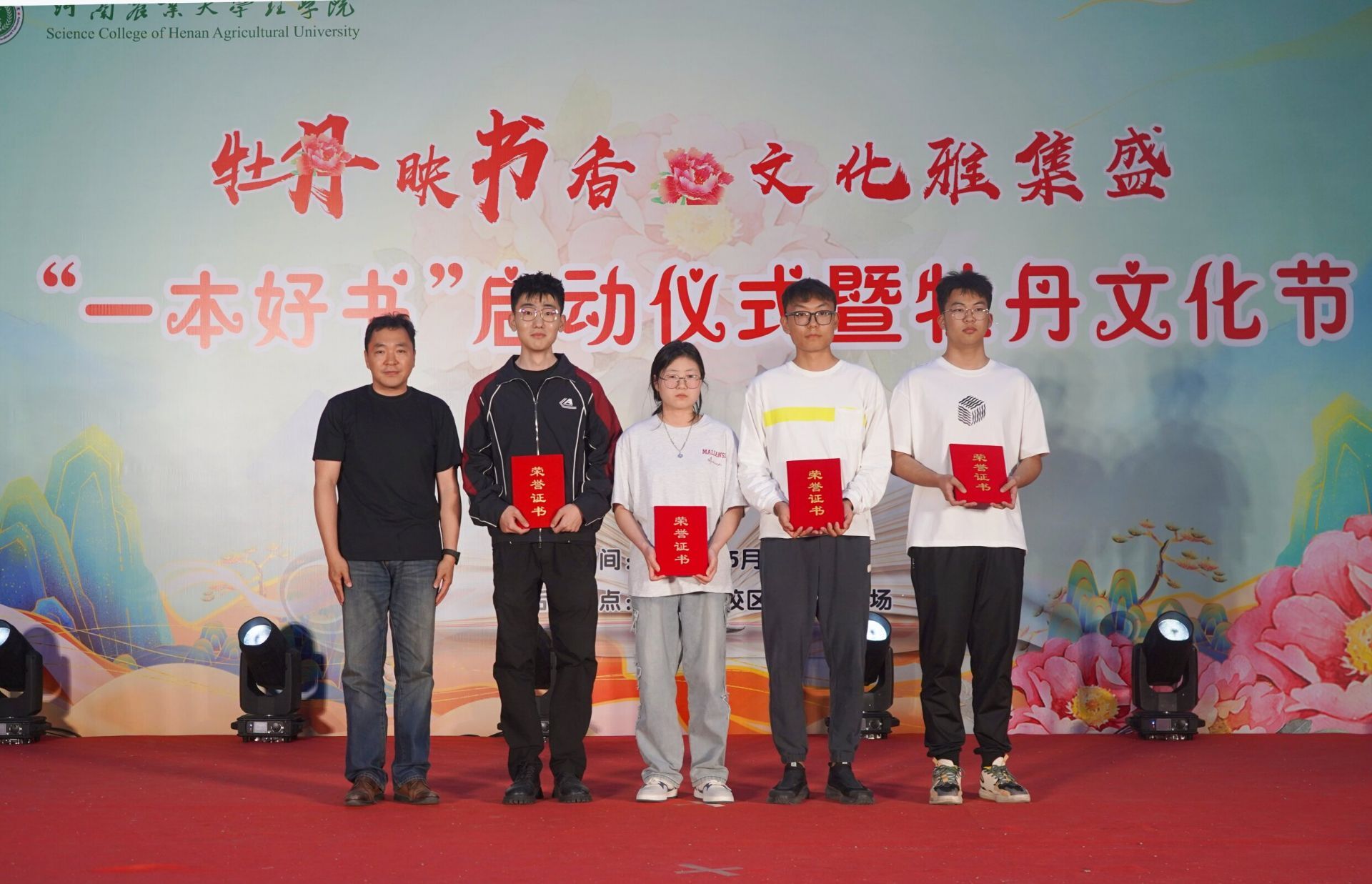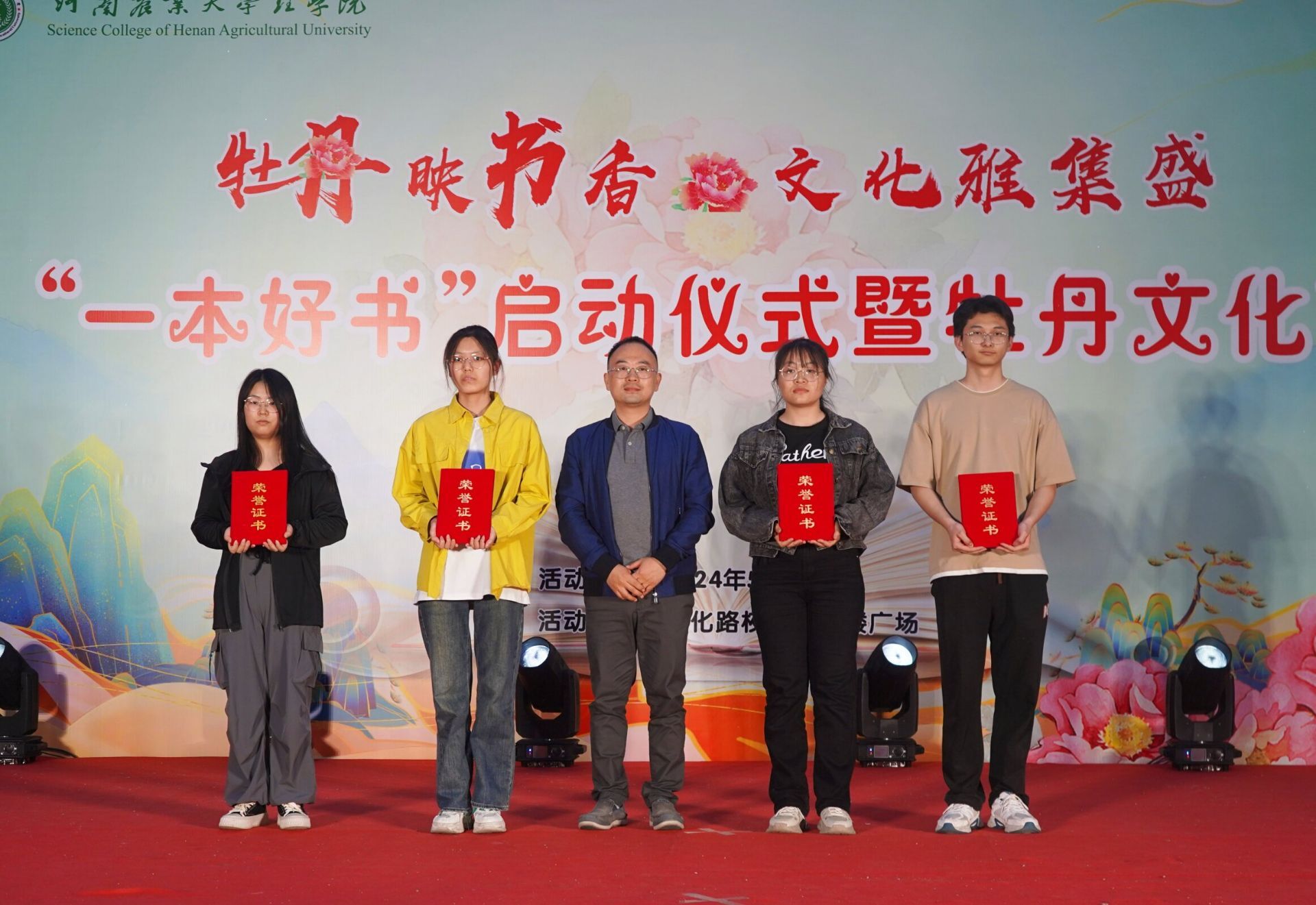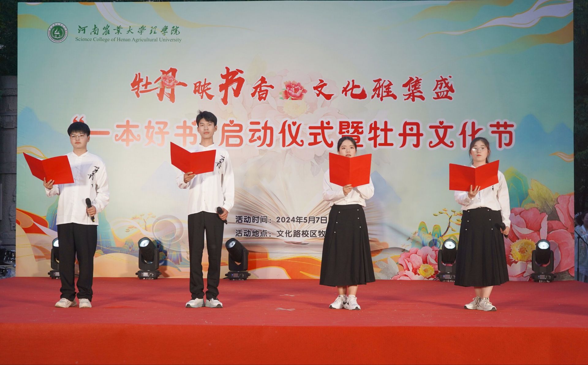 于5月7日下午在文化路校区牧医楼广场开展牡丹映书香·文化雅集盛“一本好书”启动仪式暨牡丹文化节活动,党委学工部副部长张二龙,校团委副书记谢东明,肉漫屋